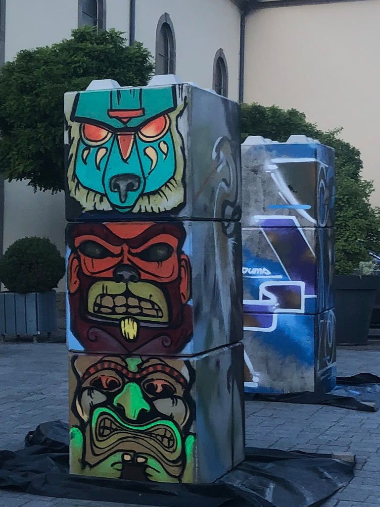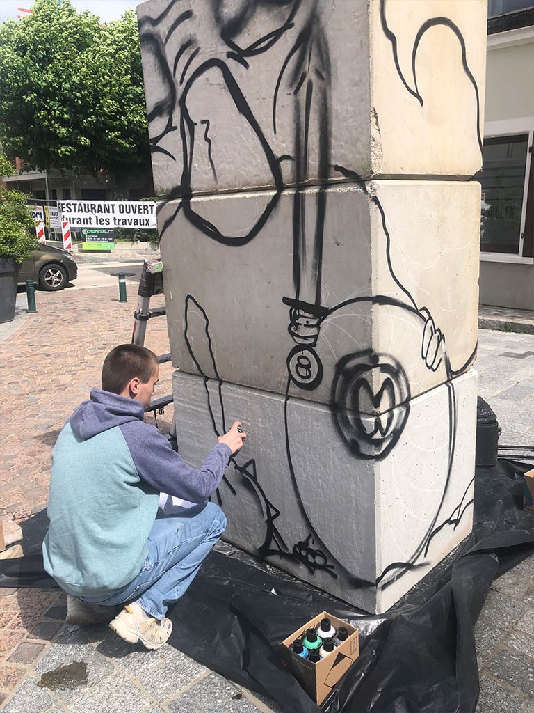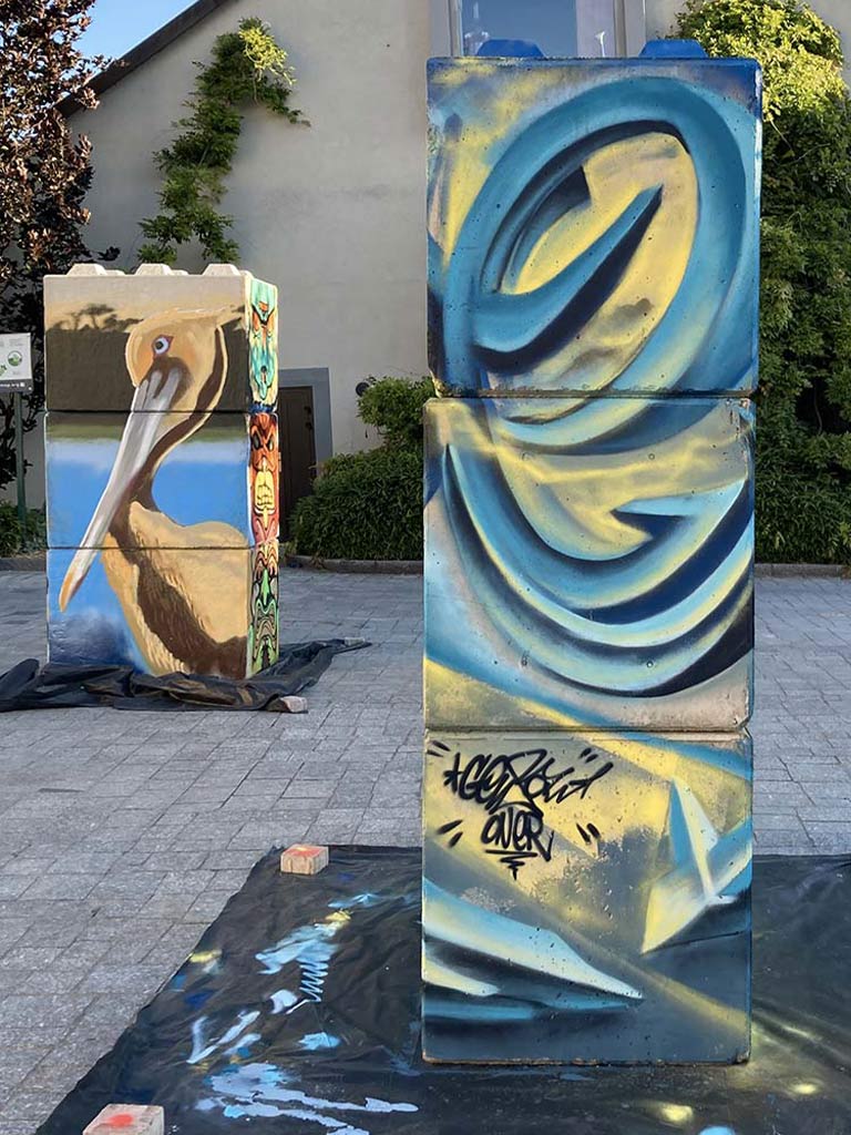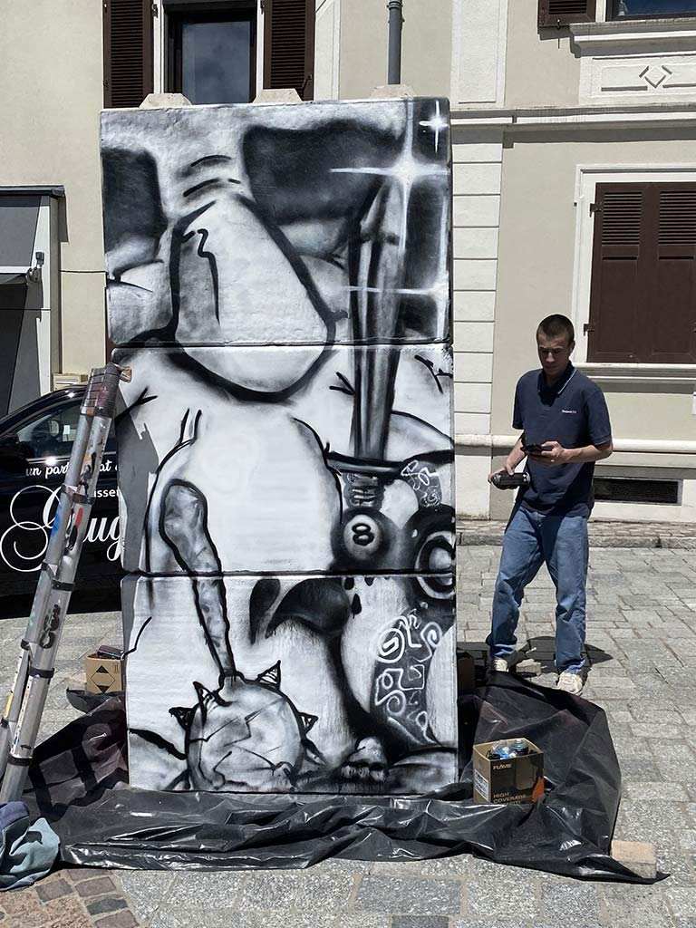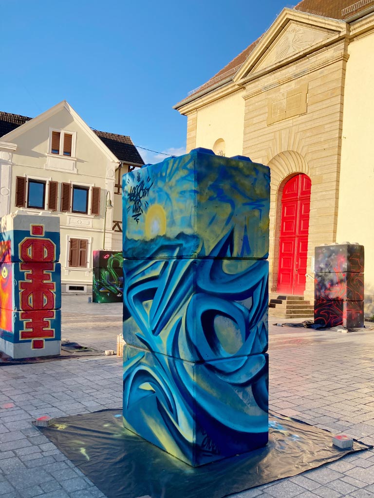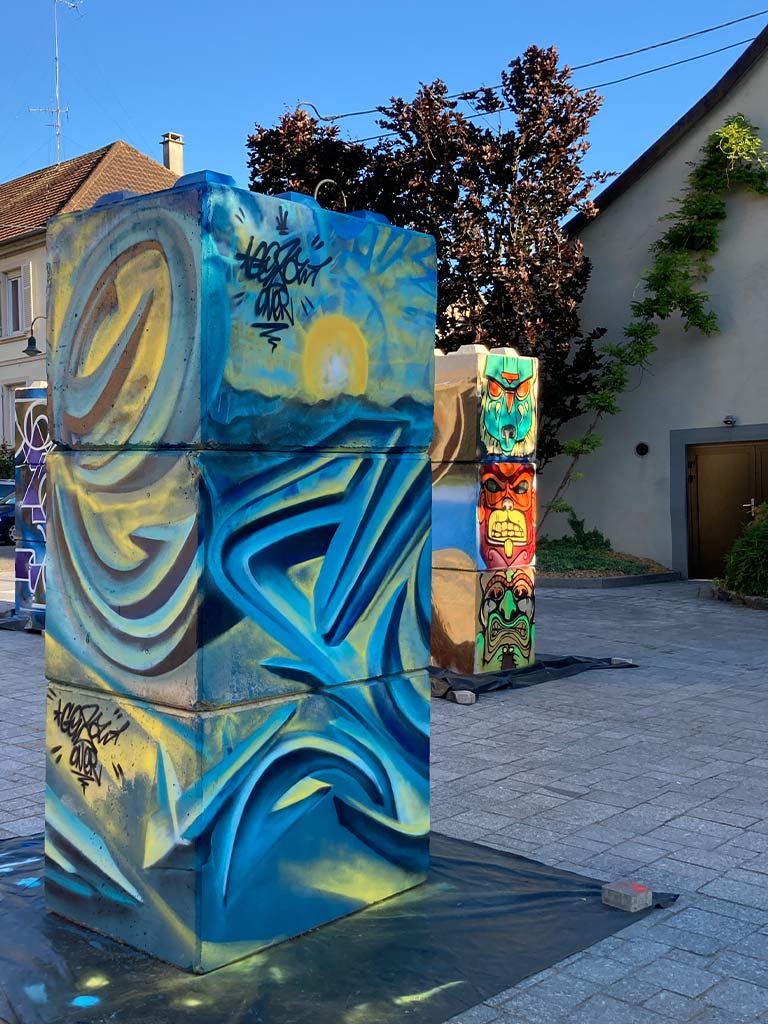Sollicité par la commune de Brunstatt et le centre culturel « La cours des arts », neuf artistes de l’association ont réalisé en live une peinture originale à l’aérosol sur un totem de béton lors de l’ouverture de l’exposition le samedi 14 juin 2024.