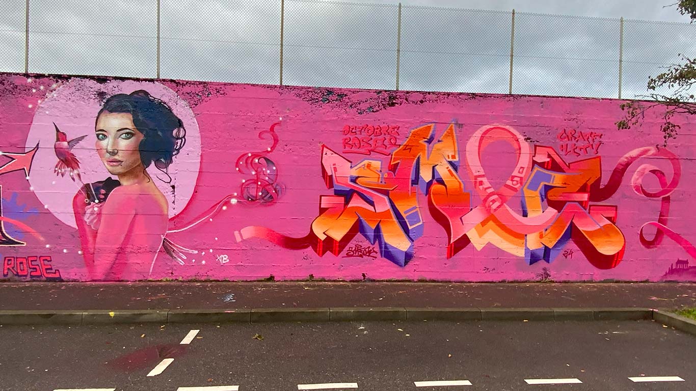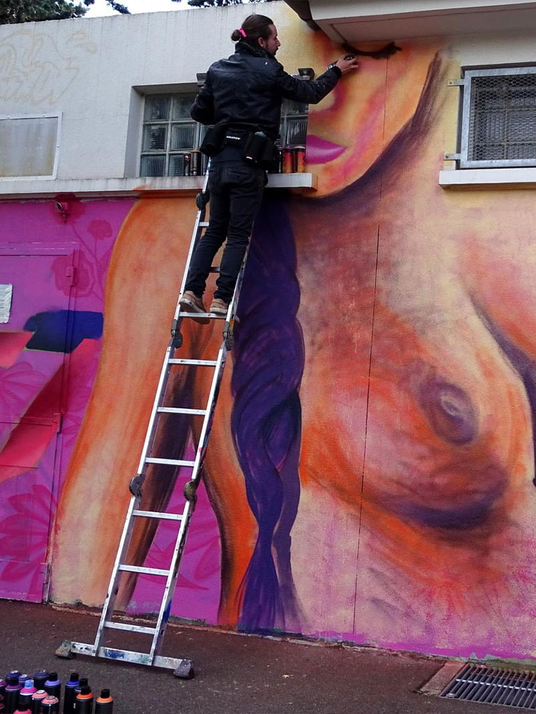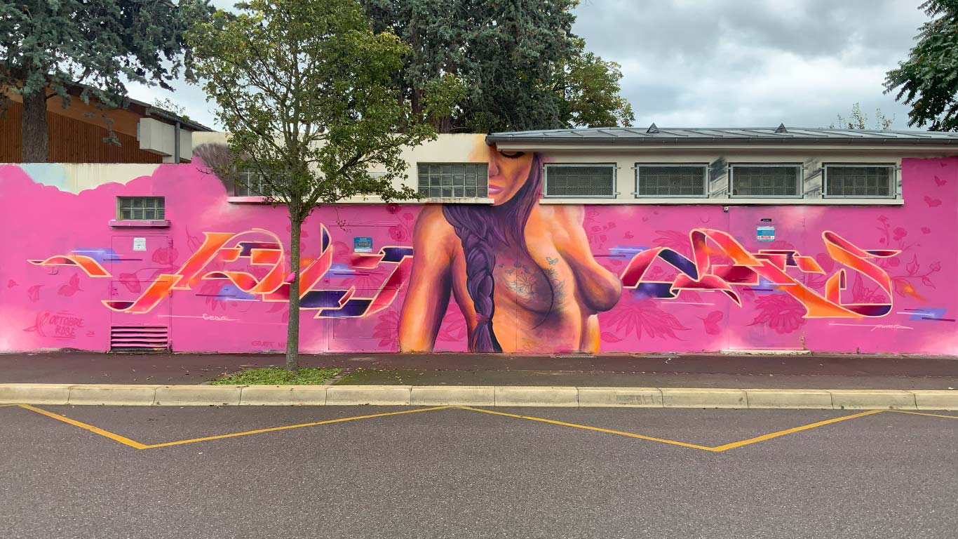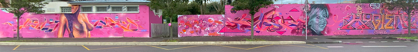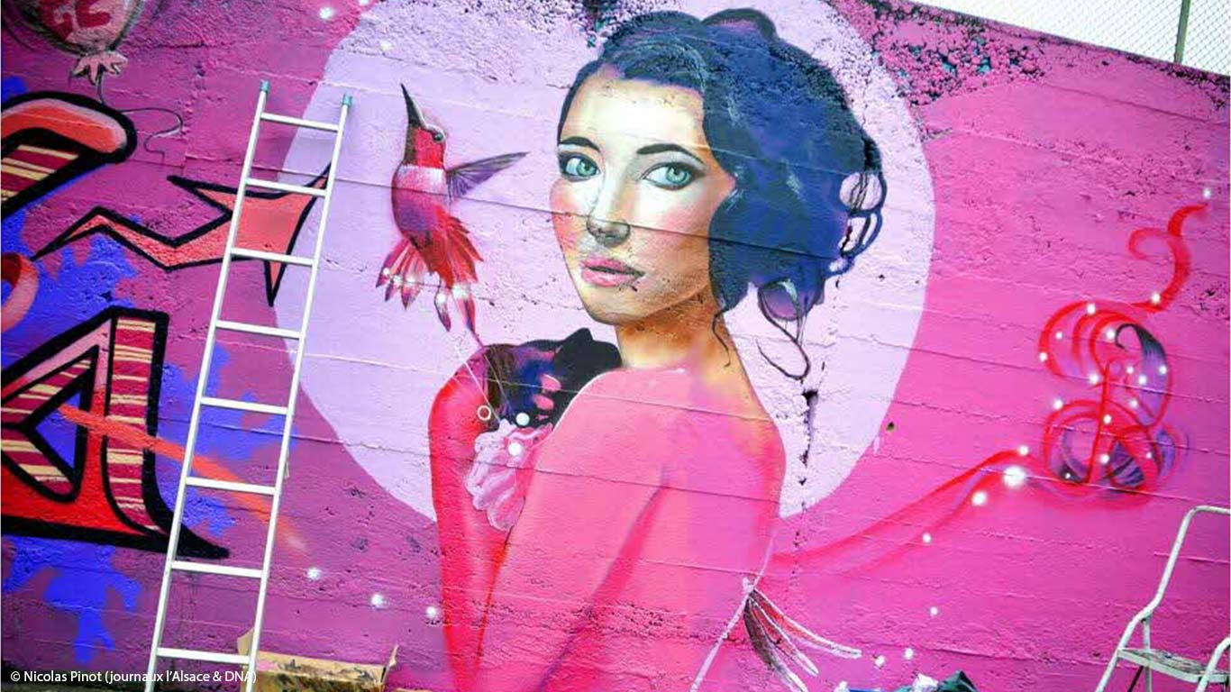 La peinture de fond rose nous à été offerte pour l’occasion par le négociant DECO 6 Colmar avec la participation de Caparol France.
