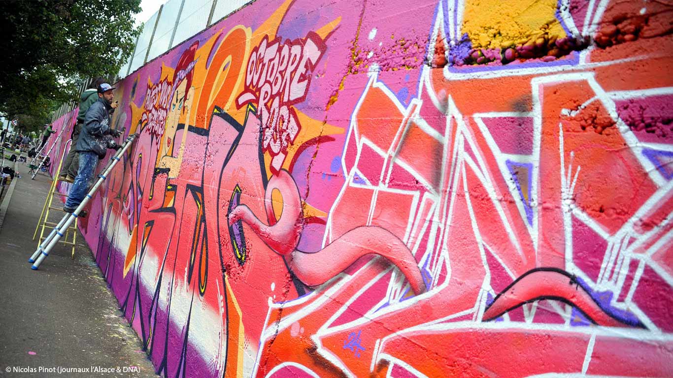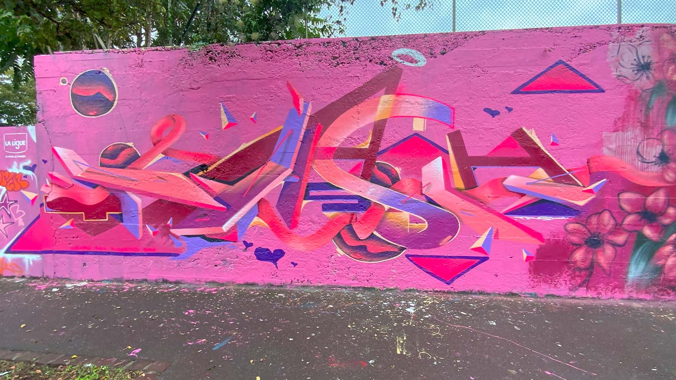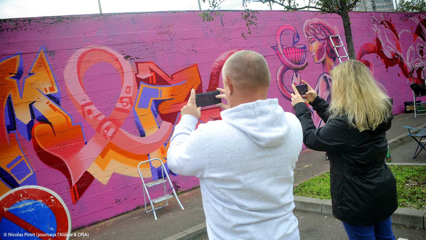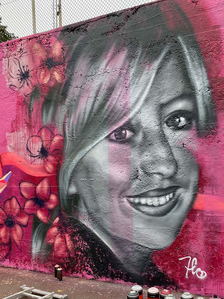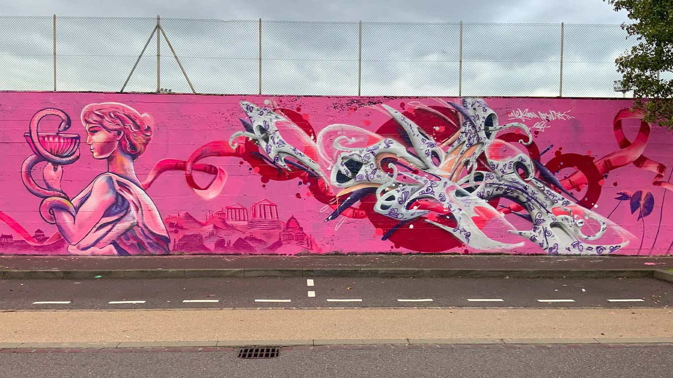La peinture de fond rose nous à été offerte pour l’occasion par le négociant DECO 6 Colmar avec la participation de Caparol France.